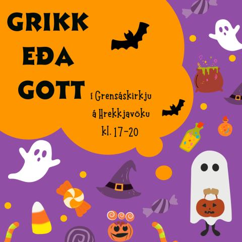 Verið velkomin í Grikk eða gott í Grensáskirkju á Hrekkjavökunni, þriðjudaginn 31. október, kl. 17-20. Þau sem koma að kíkja á okkur fá eitthvað góðgæti, hvort sem að þau verða í búning eða ekki. Við lofum sjálf að vera ekki of hræðileg.