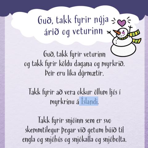 Fyrsta barnamessan verður næsta sunnudag, 14. janúar, í Bústaðakirkju kl. 11. Sólveig, Hilda og sr. Þorvaldur leiða stundina. Jónas Þórir verður á flyglinum.