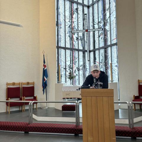 Hrólfur Svavarsson formaður nemendafélags Réttarholtsskóla flutti hátíðarræðu.