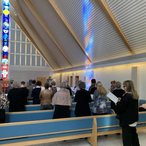 Kórkonur úr Domus Vox sungu undir stjórn Margrétar Pálmadóttur, við undirleik Ástu Haraldsdóttur organista. Hér má sjá þær á æfingu, rétt fyrir messuna.