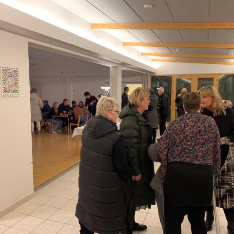 Boðið var upp á kaffi, smákökur og mandarínur í safnaðarheimilinu að stundinni lokinni. Þuríður Guðnadóttir annaðist um veitingar og þjónustu. En veitingarnar voru bornar fram í mjög svo breyttu húsnæði safnaðarheimilisins þar sem glerveggir hafa verið fluttir og útbúin skrifstofa í anddyri kirkjunnar. Glerveggirnir römmuðu áður af glersalinn svokallaða, sem nú hefur fengið nýtt þak og mun nýtast söfnuði Grensássóknar mun betur til framtíðar. (Sjá mynd)