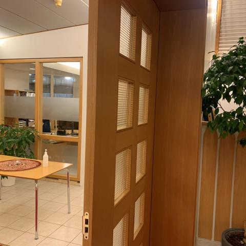 Hin nýja skrifstofa í anddyri kirkjunnar